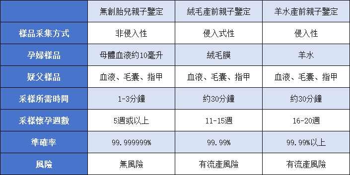 產前親子鑑定比較